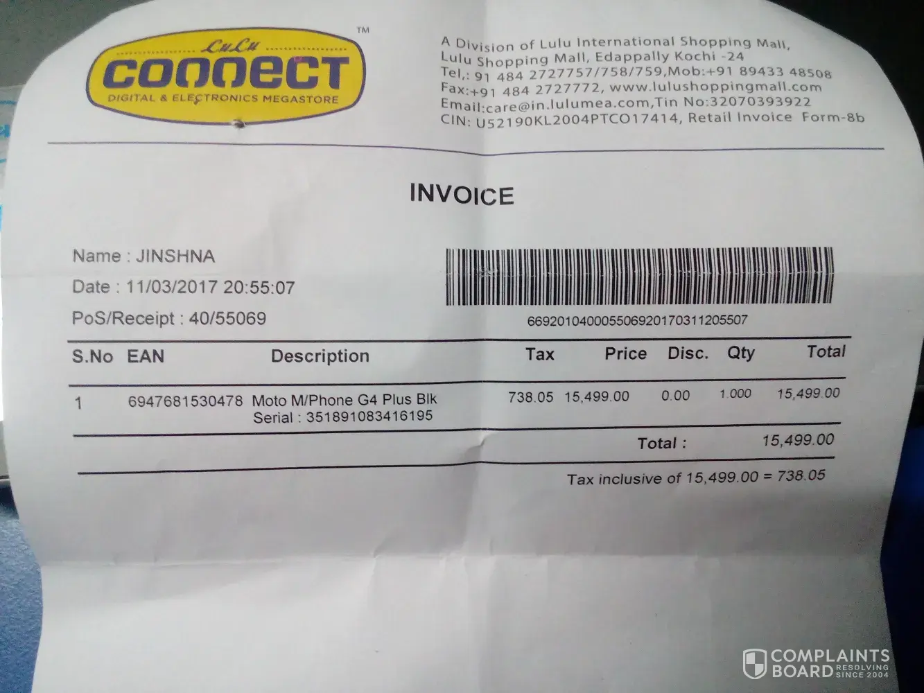 I purchased a motorolla g4 plus from lulu connect edappally lulu mall on [protected] by 8:30 pm when i reached home i took the phone from the box i noticed the phone was heating after some time i put the phone for charging that time also the phone gets heat up the next day i took some photograph that time also the phone was heating on that day i went to lulu connect edappally lulu mal on [protected] by 2:30 pm and informed the sales boy about the complaint they told that they cannot replace or exchange the phone so you go with service center what type of service is this i didn't keep the phone for more than 24 hours with me then why should lulu print on the back of the bill ( all goods purchased from lulu can be exchanged on presenting the original cash memo within 7 days from the date of purchase ) i am not intresed in giving the phone to service center so you please give me any other brand mobile