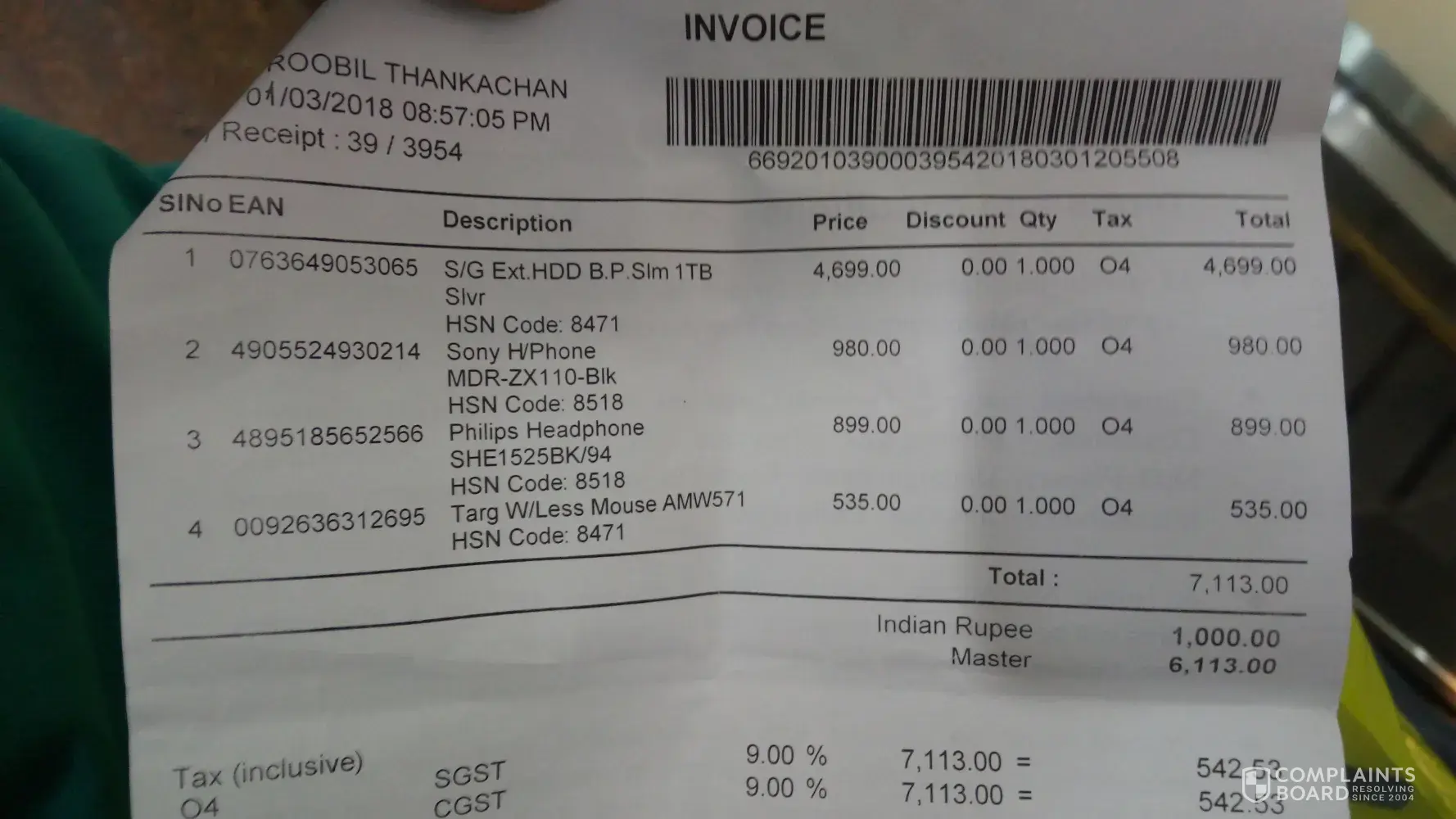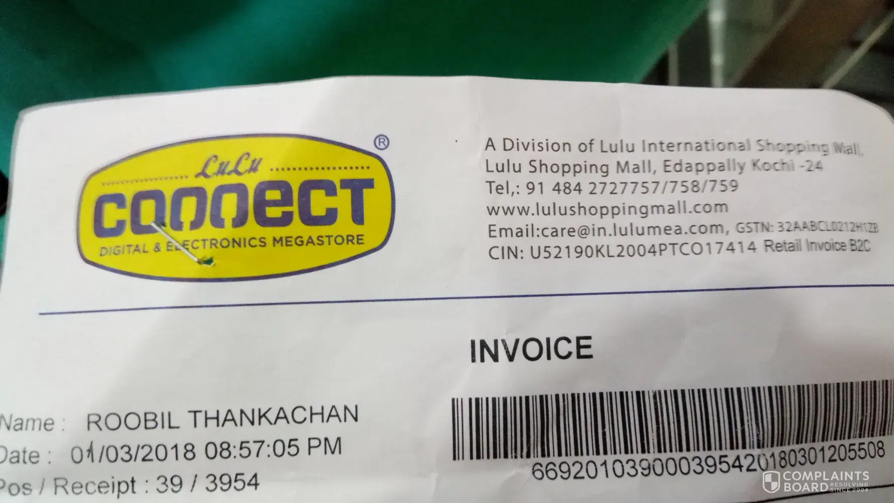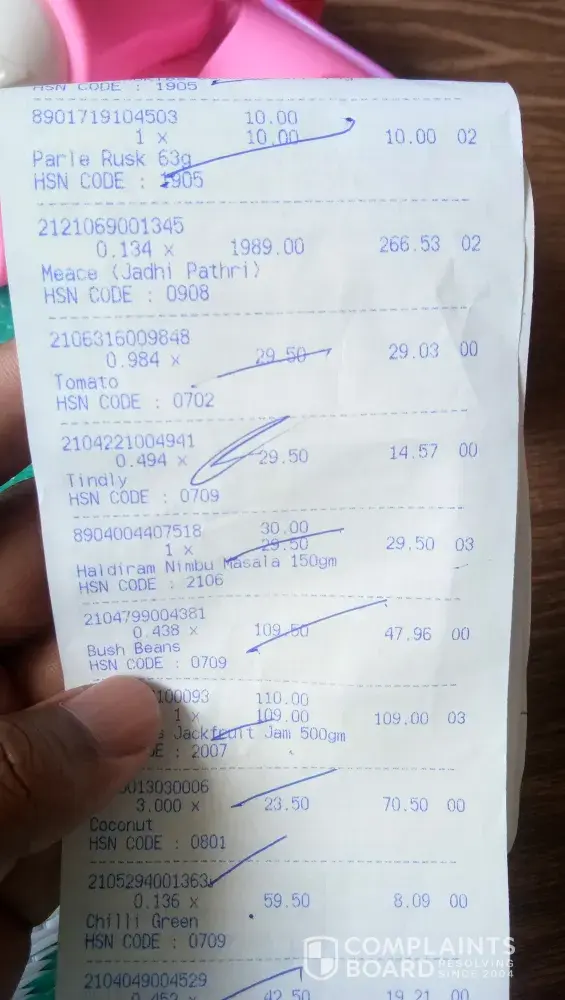 Purchased from lulu hypermarket and after reaching home I found out that one item which I haven't purchased was in the list I.e jathi pathri and was charged INR 266.53.