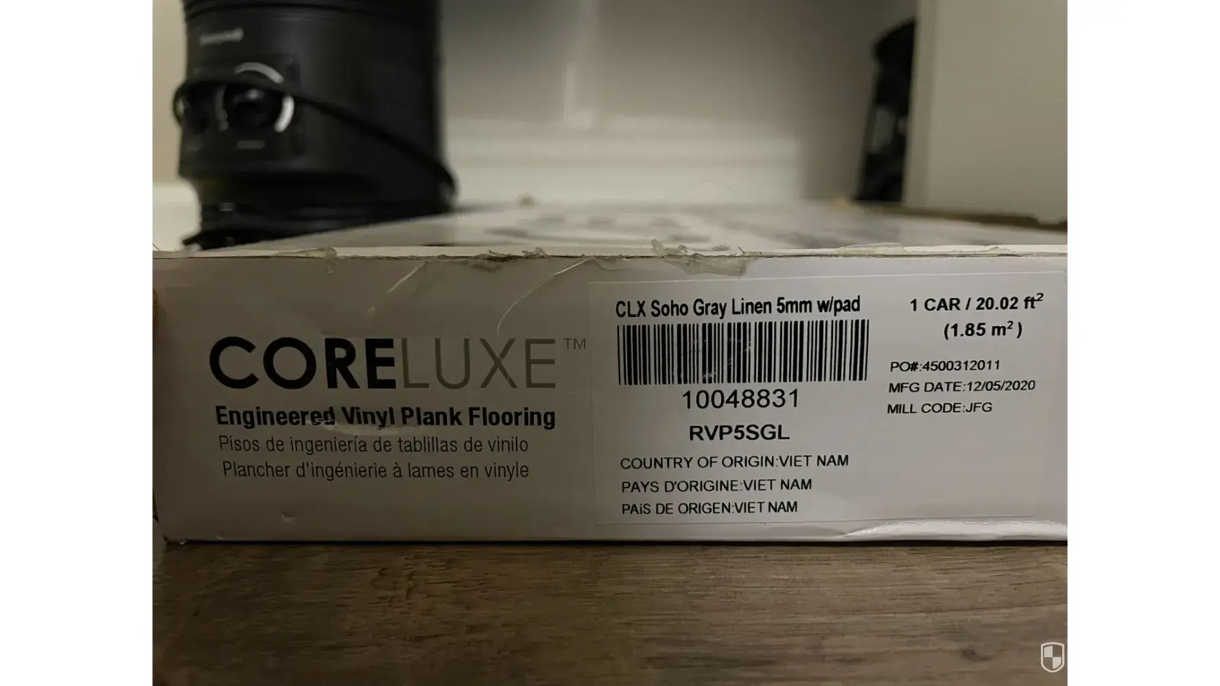 In 2019 we purchased floor covering for our new home, from Lumber Liquidators. In 2025 I needed to replace carpet in one bedroom with matching hardwood. In April 2025 we took the box label from left over flooring we purchased in 2019 to LL to order the same for the bedroom, as it needed to match the previous flooring. The new flooring was laid while I wa...