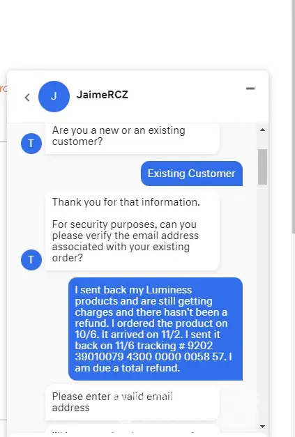 My husband bought me Lumineers Air for my birthday and when I finally got it, I was truly disappointed, it was nothing that I expected of the product. The commercial gave me the wrong impression of the item itself once I had the item right in front of me. I wasn't satisfied what so ever. I only used the two shades of cover up (which was way too dark for me) and it made me break out even more. My husband's card was charged $98.00 for two months which was for the month of June and. Now I thought the payment were for $59.99 & $20 late fee. Well when I called & demanded a full refund since I only used able tl the two make up colors and the masscara, the rest of the items I never even opened. So I called and requested a return authorization number and didn'realized that I had only ten days to ship the items back (which I took a photo copy of the items. I had called & spoke to Andres & he told me that as long as the package was delivered by the 31st of July which was my billing cycle date. I had to scrounge up sum money & ship it by the 31st so that I wouldn't get charged another month & my account would be to close. Well I paid $13.59 out of pocket to send the package through ups. & I was told the package would arrive by the 31st. Well I tracked the package & it arrived to your establishment on 7/31/20 @ 9:20 A.M. but no one was there & you still continue to try to bill us for the month of August. I would like to just forget this whole deal doing business with you guys. It's constantly the reason for my argument w/ my husband! Now you can refund me the whole amount that you guys charged my husband card. I understand if you need to charge me for the masscara & some money for using the cover-up a few times but as far as the machine & all the other items that came with the order I didn't even bother opening that, I reshipped the item back with the original box. The only thing missing is the masscara & the little pink rubber lid that goes on the sprayer. I hope you guys can make it right & honor your money back guarantee policy if customer isn't satisfied. Please refund the two months of $98 plus the 19.99 amount for the item & close my account. I regret buying your product, it just isn't for me & I have returned the items & do not plan on doing any kind of business with your company. Such a big hassle and disappointment, please just make it right. I hope your company is at least good on honoring your customers.