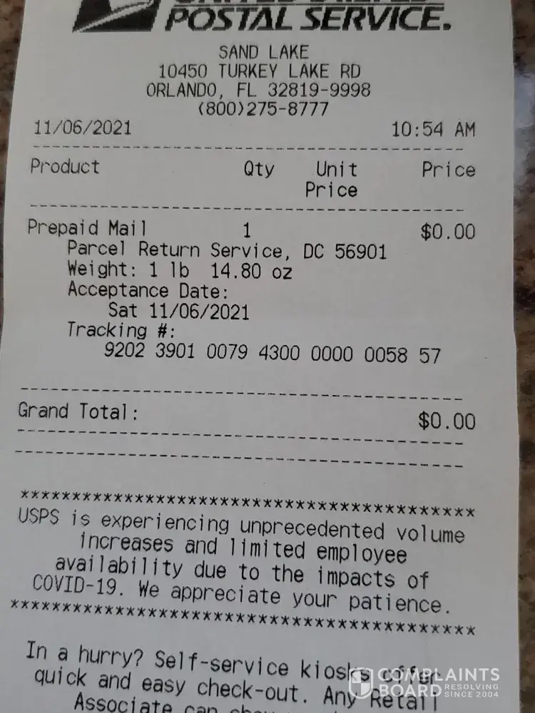 Read full complaintI called/emailed and ask for a shipping label and they refuse to email me back a shipping label.