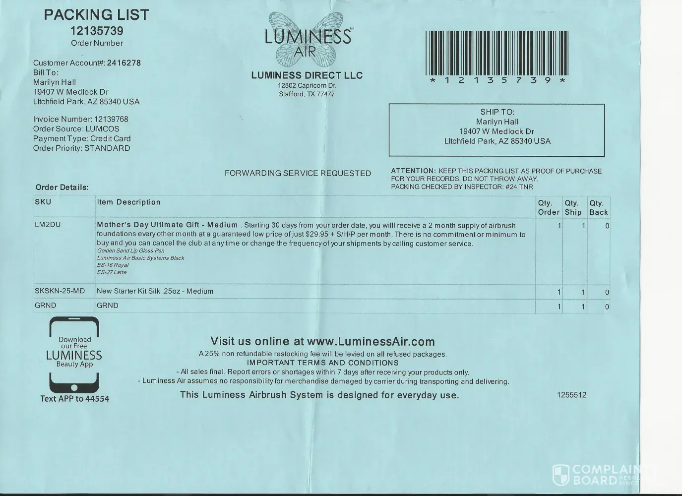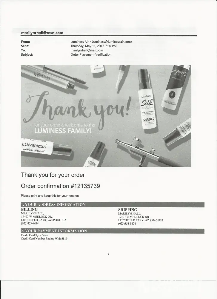 The product was ordered in 2015, I tried the system and make up products but within 2 days my skin started to get big hive like blisters on my chin. Immediately paid the postal service to send it back. The postal service said the exact return date so I contacted Luminess Aire with this information since I only had it less than a week. The customer service said I should have called before returning the product to get a restock number. I told her there was nothing on or in the ad or product box stating this information. I told her the reason for return was due to the blisters created in my chin by the product. She still charged the 24.95 for the one week possession when the ad explicitly states that you will be 100% refunded if not satisfied and product is returned by 30 days. They lied in the ad then lied through customer service then scam the $24.95 from my credit card. I have pictures of what this product did to my face. It's not a pretty picture nor has my skin healed and it has been almost 5 months. If this doesn't heal within the 6th month they definitely have a court case in their hands. Anyone want to join me? Never had blister breakouts on my face and will never speak good things about this product. The lies and damage to my face is enough to make you scream and I'm a very peaceful and reasonable person. Never again...