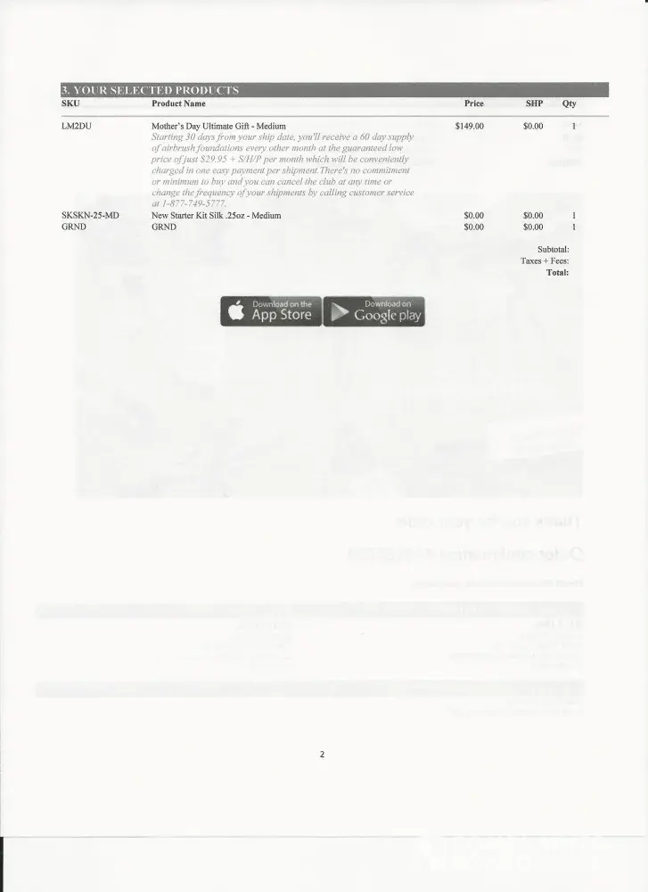 The make up is horrible. My face started to break out and I called them immediately. I sent the product back. The airbrush and makeup. They say they did not get it and keep charging me. This is why I am NOT going to order anything on line any longer. Unless I have a history with any company. People are going to stop ordering items on line, based on TV Ad and go direct to the store and buy where you can look at item and maybe check it out. Here I am trying to stop my credit card now. Bank has appointment for me to come in to get a new ATM card today. ENOUGH!