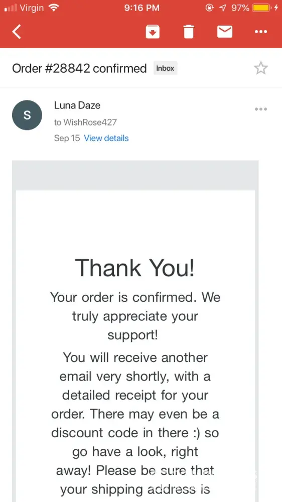 I have purchased a necklace from LunaDaze as a present for my girlfriend. My order arrived quite fast and I was very impressed with such quick delivery.