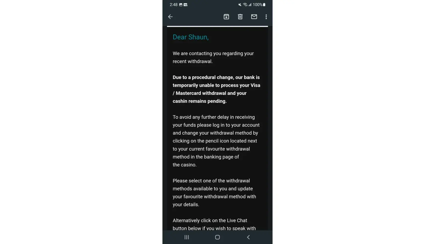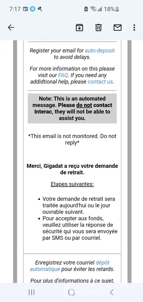 Email of all sudden withdrawl failure and locked account.