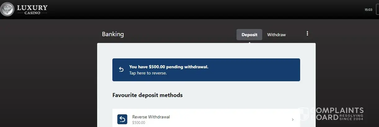 I won $2000 and did the withdrawal process and they say they cannot put my winning money back on my card because it does not except reversals. Now this is a Scotia bank account and not only do I work at the bank I know all the info about reverse transactions and luxury casino is not telling truth and I have been waiting the alloted time put out by there withdrawal process of 48hrs and now I'm going to contact the gaming committee and give a full report of there misconduct and hoe they are going against gaming policy's in Canada. My employer, the bank of Scotia is backing me up on this claim if my money is not returned to my account in 24hrs
