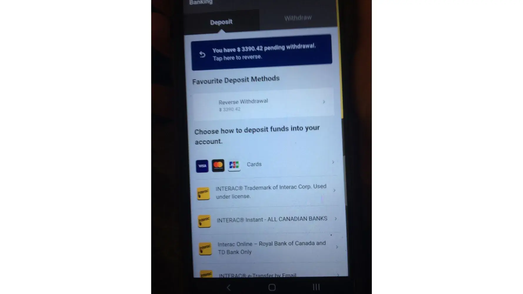 I put through a deposit of $100 last week and with the new i gambling ontario and it checks every 10 mintues where you are , all was working until last week.
