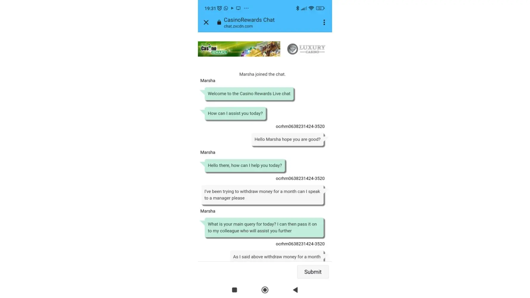 I want to make a complain about luxury casino online