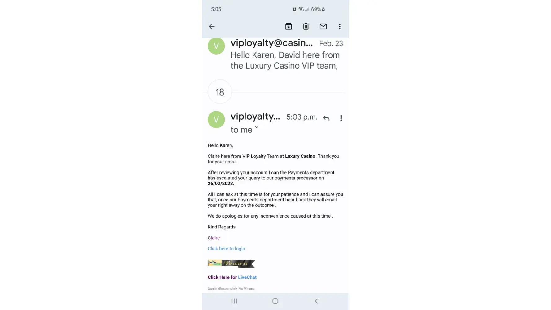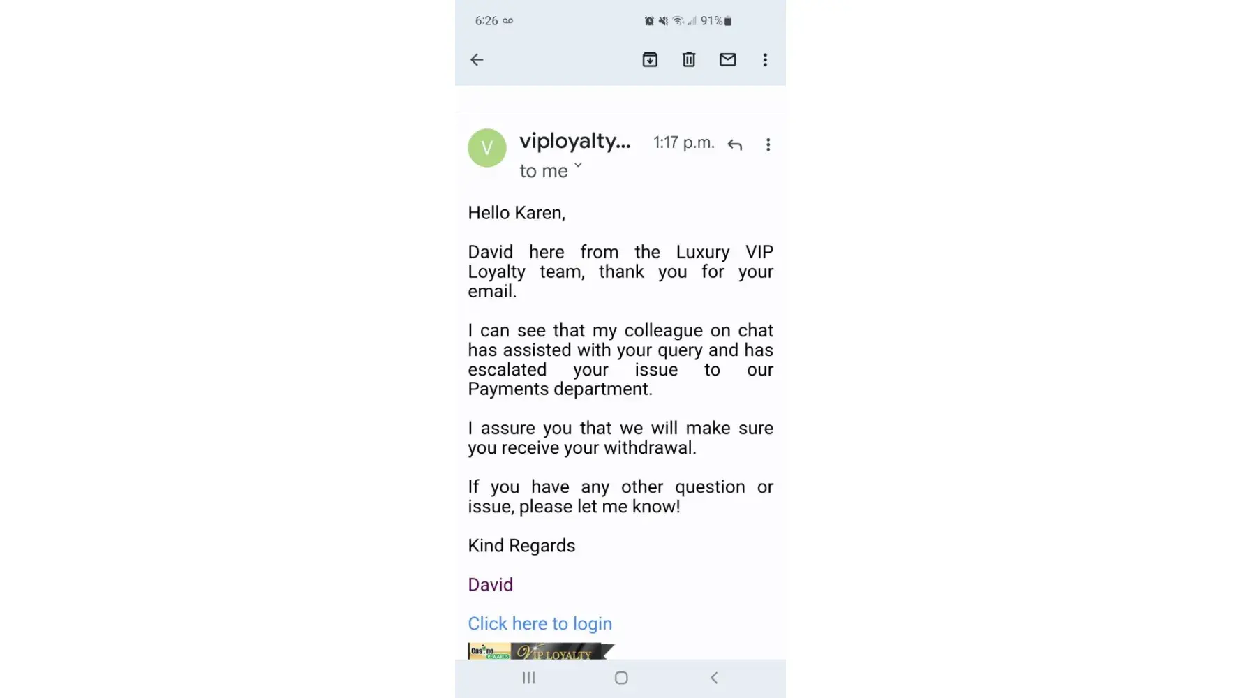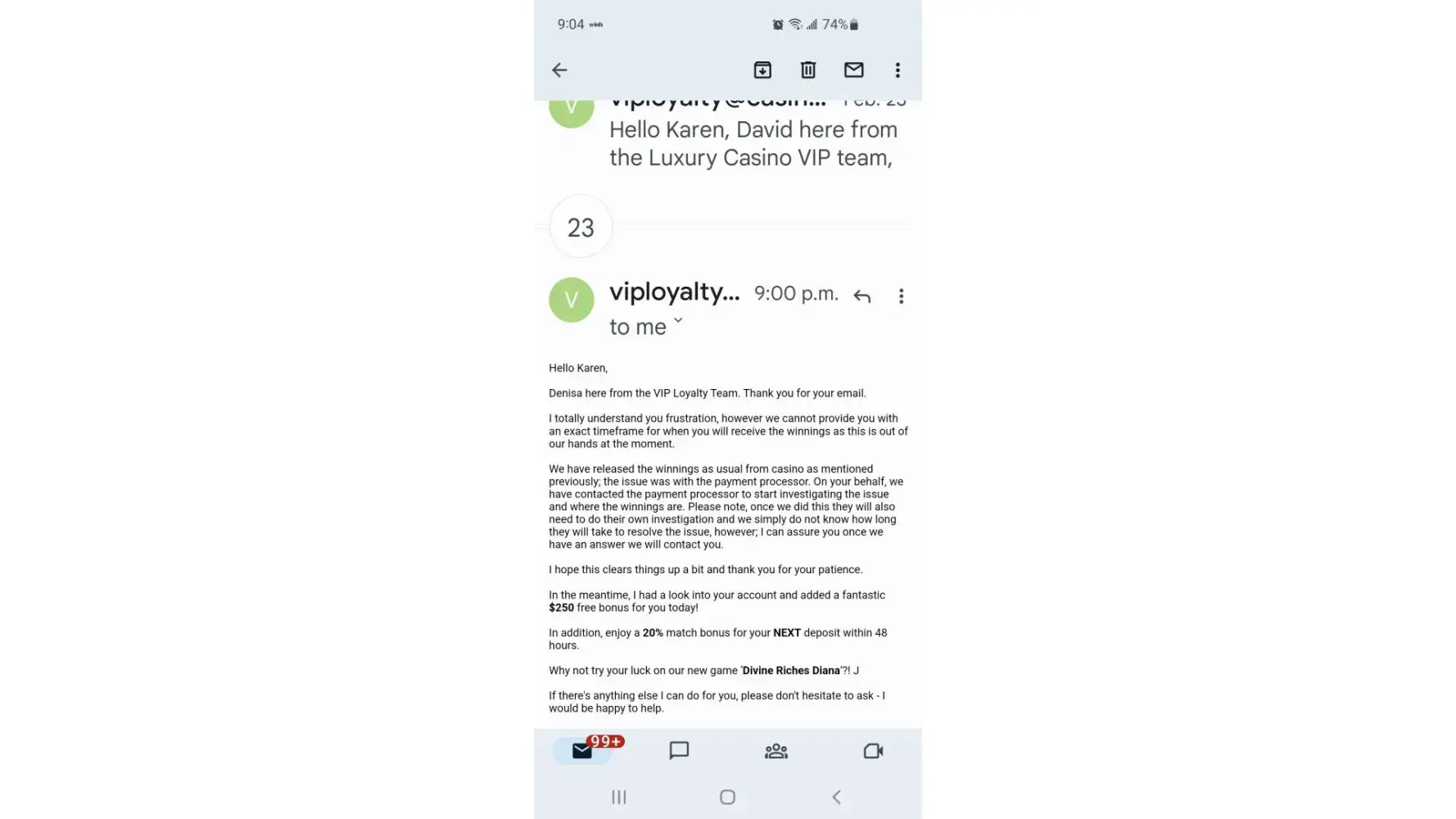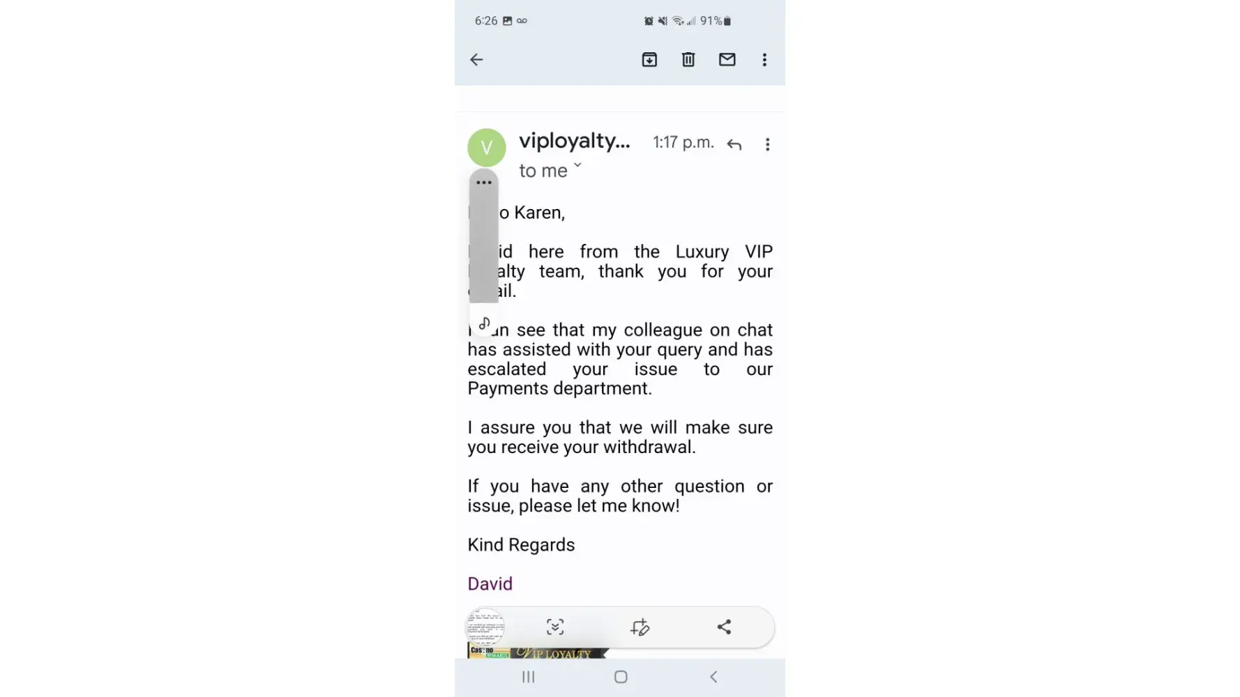 HER IS THE EMAIL I GOT FROM THE CASINO REWARDS LAWYER Dear Mr. Johnson,