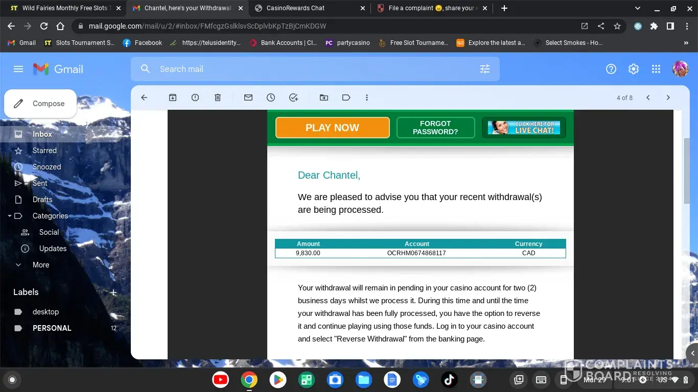 Casino Rewards, shares ALL your information with third parties even though they say that don't. I was getting calls from India, emails from different banks based over seas via my information sold to them from casino rewards! I spoke to Coraline to get my info removed and she declined, said flat out no, I reminded her that we have a privacy act in Canada and she has to remove it if I ask! Online Chat is overall a joke, they constantly re route you to different agents. I said "Good Morning" and I got a " I do not understand your request, I will transfer to a different agent"... are you serious! LOL