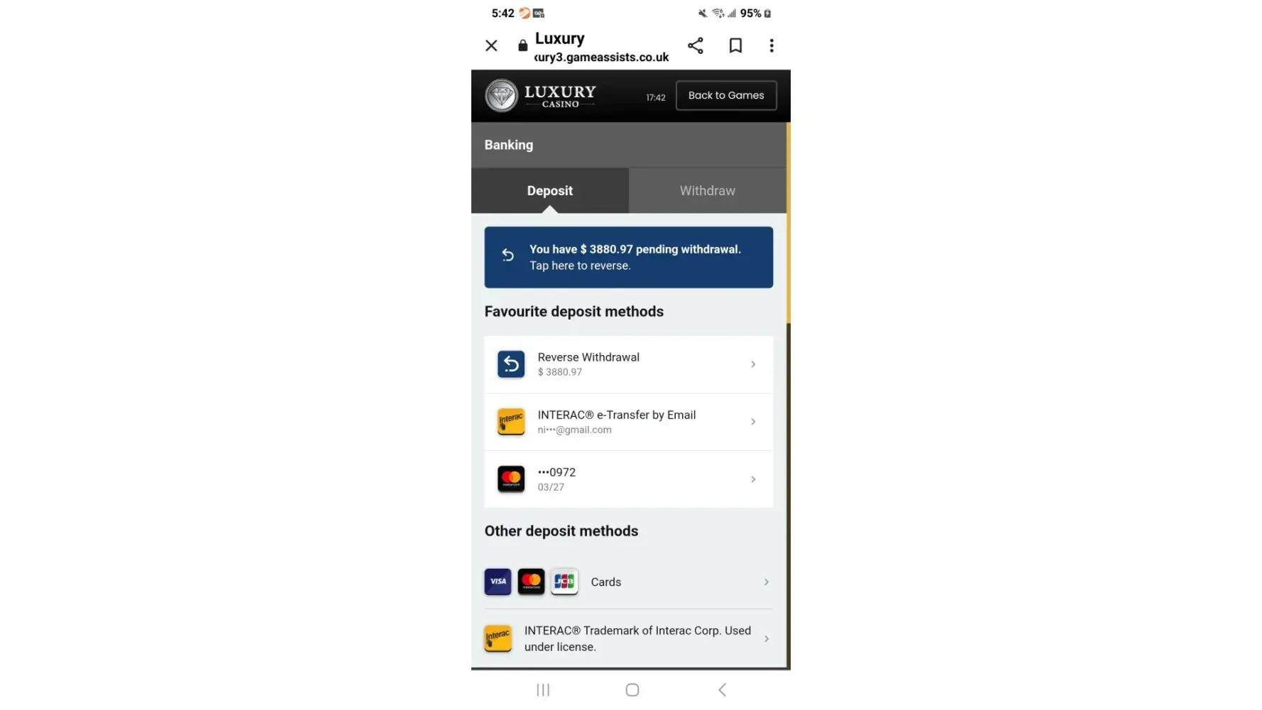 I used a casino website called Luxury Casino. I started off by depositing £20 (UK Pounds Sterling) and was also given a £20 bonus as I was a first time user on this site. I got lucky and got up to £350, so I tried to withdraw my money. As I went to the section where you withdraw your money there was a message saying my account wasn't activated and I had to activate my account. I could this by sending a copy of my driving licence or passport to their email address, in brackets it said that this could take up to 24 hours or by making another deposit. I decided to make another deposit as I did not want to wait. After making another £20 deposit I was still getting the same message about sending a copy of my driving licence or passport to their email address or by making another deposit. I then sent a copy of my driving licence to their email address. This seemed to work and my account was validated soon after sending the email, but I still could not withdraw my money as another message then came up saying I had not reached the limit I needed to gamble to make a withdrawal. I carried on gambling and got up to £623 and could still not make a withdrawal, so I contacted the live chat team. They told me that I had only gambled £188 and had to gamble another £460 to make a withdrawal. I told them that I had gambled much more than that and they sent me a list of different percentages for different games on their casino. It seemed that some games only counted 2% towards my withdrawal allowance and that slot machines counted 100% towards my withdrawal allowance. I then started playing on the slot machines and could make a withdrawal till I got up to £850. I then gambled a bit more and got up to £1000, then decided to withdraw my money. The money was taken out of my account, but there was a message saying that the withdrawal was pending and could be reversed. I logged back into my account the next day and it was still saying that the withdrawal was pending and could be reversed. I then contacted the live chat team again to find out why my withdrawal was still pending and how long it will take to get my money. They told me that withdrawn funds always stay pending for 2 days to allow you to reverse the funds, then they get sent onto my card which takes 3 working days. I then tried logging back onto my account a few days later, but it was saying that my account had been locked. I then contacted their customer services team who looked into my account and told me that it had been locked by the risk management team. I had to email them to find out why my account had been locked. I asked them for a phone number, but they said that they haven't got any phones in their office and I could only contact them by email. I emailed them and spoke to them on a few mails, and they are trying to say that they will not give me my money because of a breach of bonus account terms and conditions of the casino, but their terms and conditions make it almost impossible for you to cash out any money by accepting their bonus. Luxury Casino is run by casino rewards who I believe are licences by you. Could you please look into their terms and conditions which are unfair.If you need any more information, please do not hesitate to contact me.Kind RegardsQaiser Malik