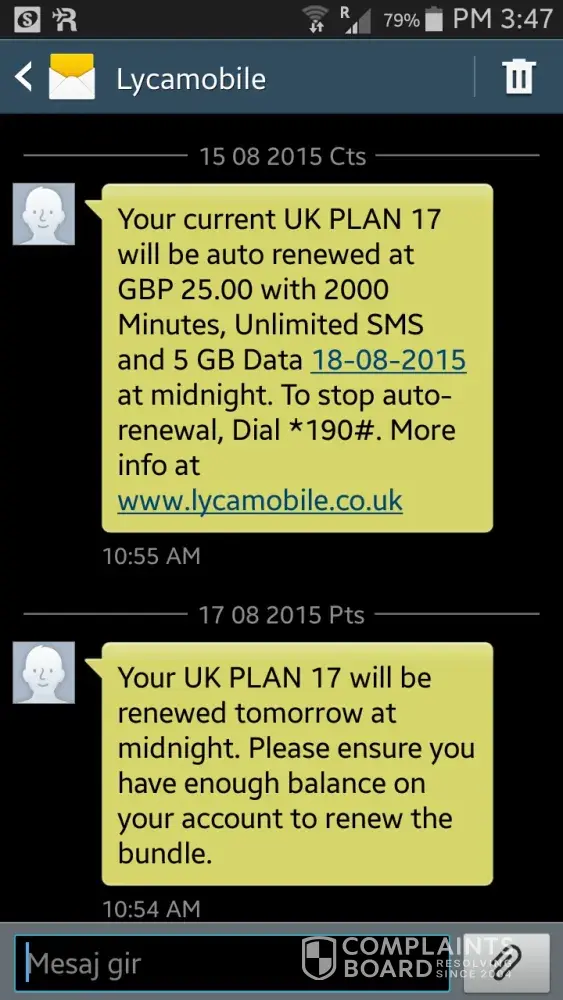 3.Last night was my renewal date, they kept sending me messages to keep my account balance sufficient.