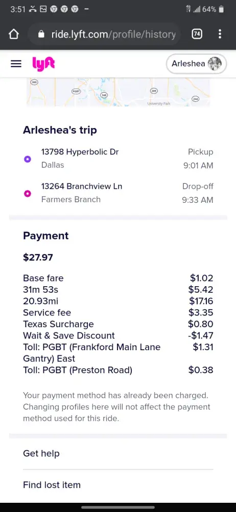 This morning, though, the same thing happened when I was being picked up. Lyft said the driver was at my address, and I'd better move it or get charged as a no show!