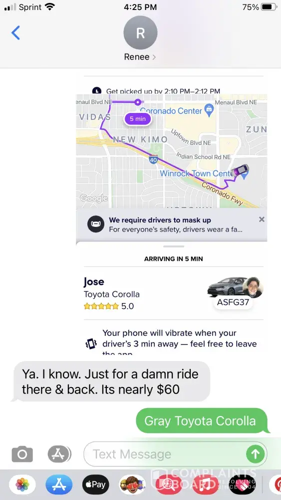 Rode with Corneque on 5/4/21 to Hartsfield-Jackson Airport, GA.