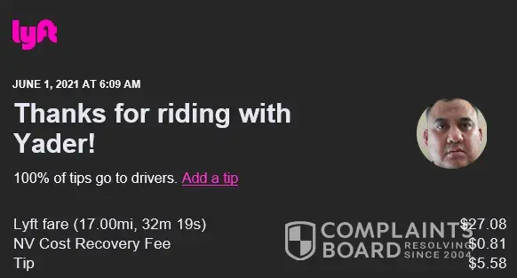 I was picked up by a driver named Yader in Las Vegas NV. Everything was fine about the ride in my opinion. He did not seem to want to talk much so I left him alone and just focused on my phone during the ride. To find out later that he accused me of not wearing my mask for the trip. I then was being punished by lyft for something that was untrue and apparently no evidence needs to be shown for them to do that to you. I will not use lyft anymore.