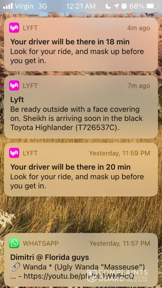 Lyft No providing a service after waiting and the driver canceling at the last minute