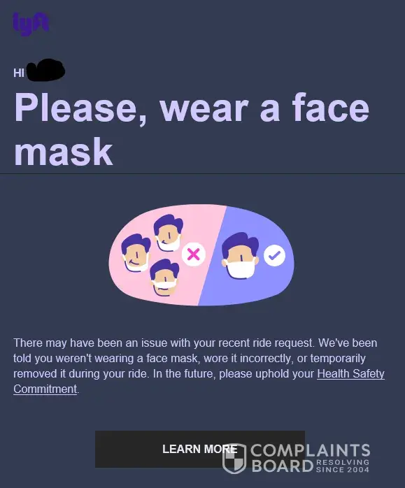 Before driving, you must agree that you'll wear a face mask as required by federal order, are symptom-free, and will follow CDC guidance related to COVID-19. If we get feedback that you're not wearing a mask properly, you'll need to take a selfie with your mask on before driving with Lyft again.