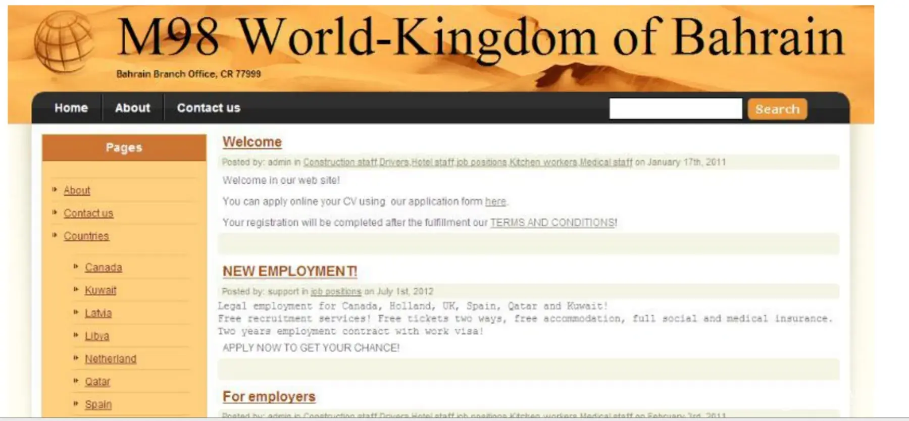 This “m 98 world†manpower recruiting agency, mahooz offering 2 year canada work visa for all type of people (Skilled / unskilled) . They charge bd. 40 for registration from the candidate. And also they said 10 months for visa processing. I register there june 2011, that time they gave one receipt for 40 bahrain dinar, but that receipt they put one stamp also unfortunately that stamp is "m98 food" now my doubt how they can stamp these seal for manpower recruiting purpose, and also i saw their certificate of registration (Cr) , there cr activities is entirely difference from their profession (Manpower recruiting) . This is a single person company (Spc) . They daily gave big advertisement in all news papers and magazine. I contact this agency january 2012 through telephone and they told me february last is your medical in alkindi hospital, bahrain. But still they didn’t contact me yet. But if we call them theay are saying come and collect your medical form and take medical result from al kindi hospital, (Medical charge we want to pay bd. 150 / - to hospital) also we want to sign one declaration form from m98 world company. I met some other candidate their, they are also share the same story. Everybody saying if we contact they are saying we are planing to contact you. Also this hospital they have no information from any employer from canada also they have no responsibility for the job. If we go their they will take our medical result that’s all. (It’s their job we can’t say anything) . Now i want know about this m98 world company, is it geneuine company? Did they have any authorisation of manpoweer recruiting from bahrain? If anybody know about this company please reply.