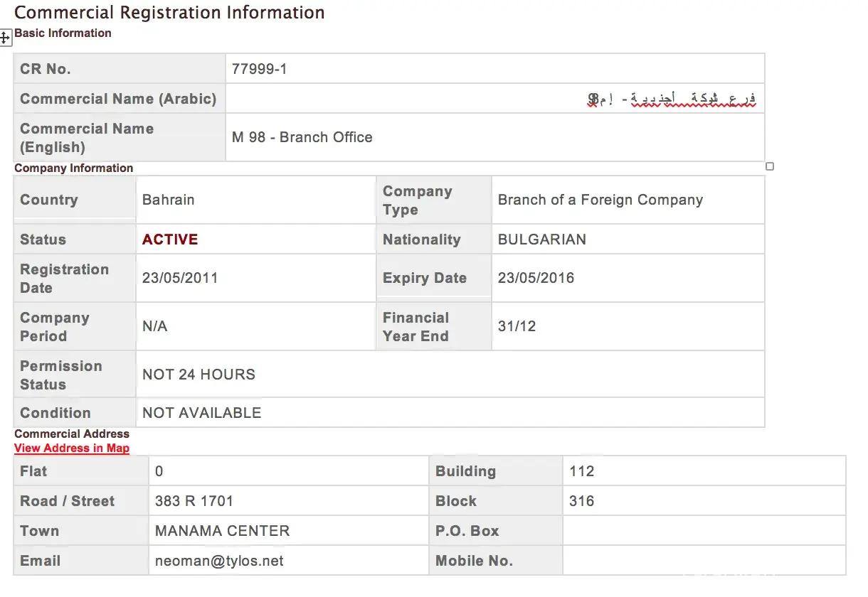 Bahrain CR Company Registration 77999-1