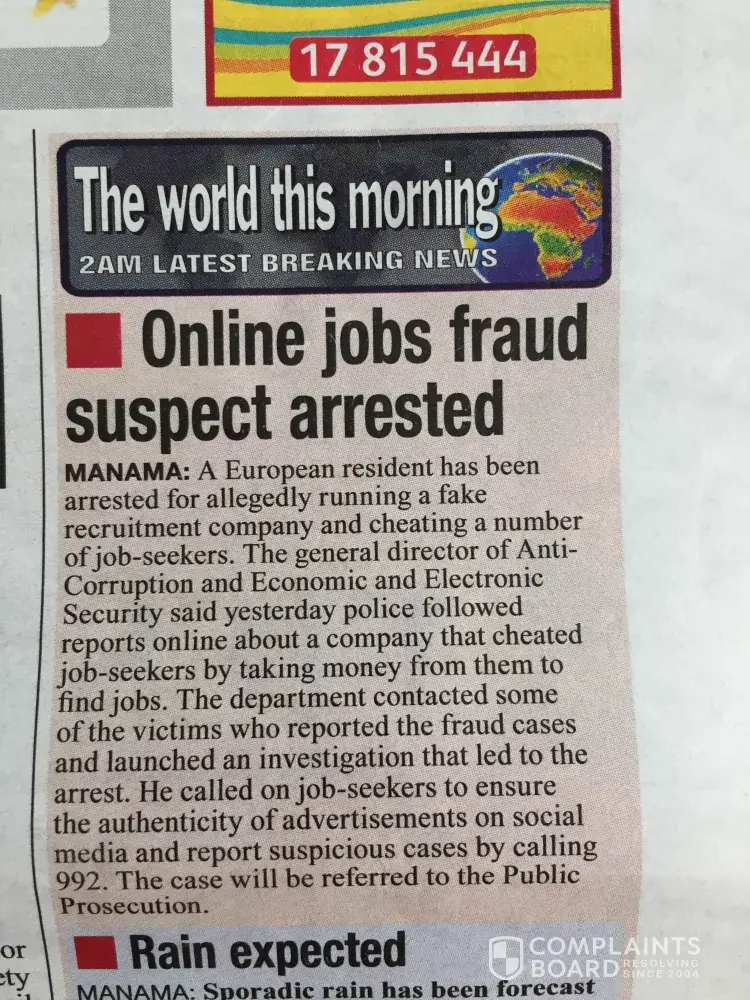 I am also a victem...but i have a question..when an expat dose a mistake he is procecuted but this time what is the LAW authorities doing in Bahrain are they only for cr registration fees? dont the chamber of commerce hold any responsibility and governance over their crs issued?...when a company is registered for job placement the authorities should check their credentials and have a check on their managements passports and make sure that residents of Bahrain are not cheated my such anti social eliments.