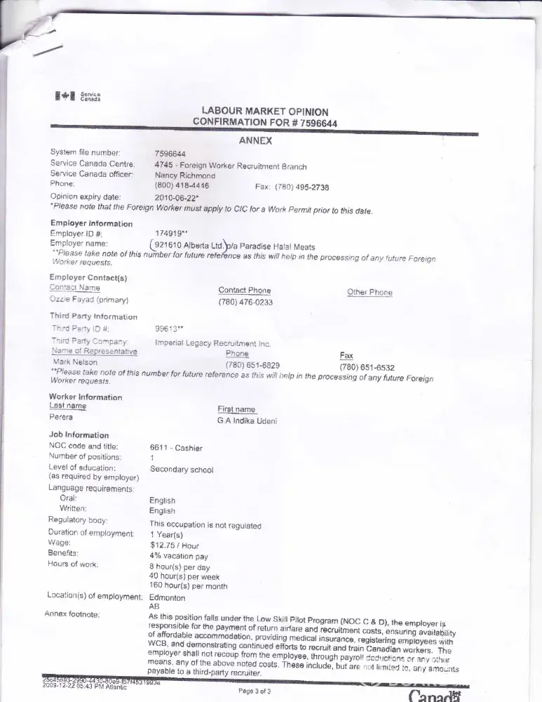 After you obtain a Labour Market Opinion approval letter, send a copy of the letter to the recruited temporary foreign worker, along with your employment contract, which must indicate how long you are offering a job to a temporary foreign worker. The LMO is issued for the same period of time.