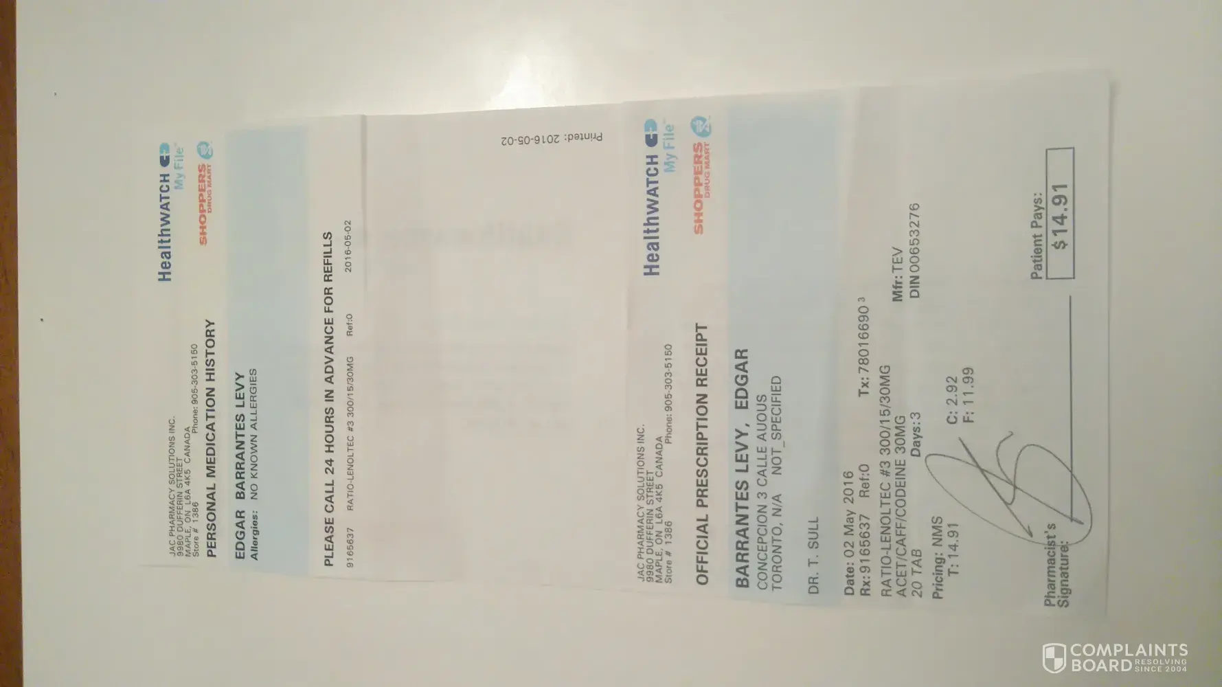 So now as her mother you can see my frustration and utter disgust at how things were handled. It did not stop there as then on May 11th later that day I went to get the prescription filled for my still sick 4 year old daughter and came to realize that the Cortelluci Emergency Department Doctor gave me another patient’s prescription.