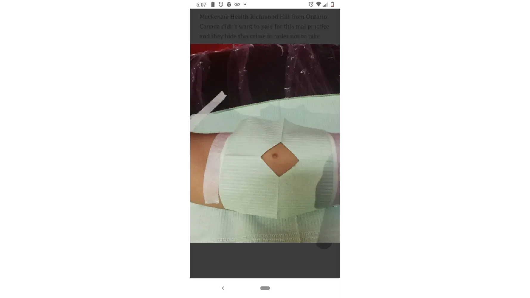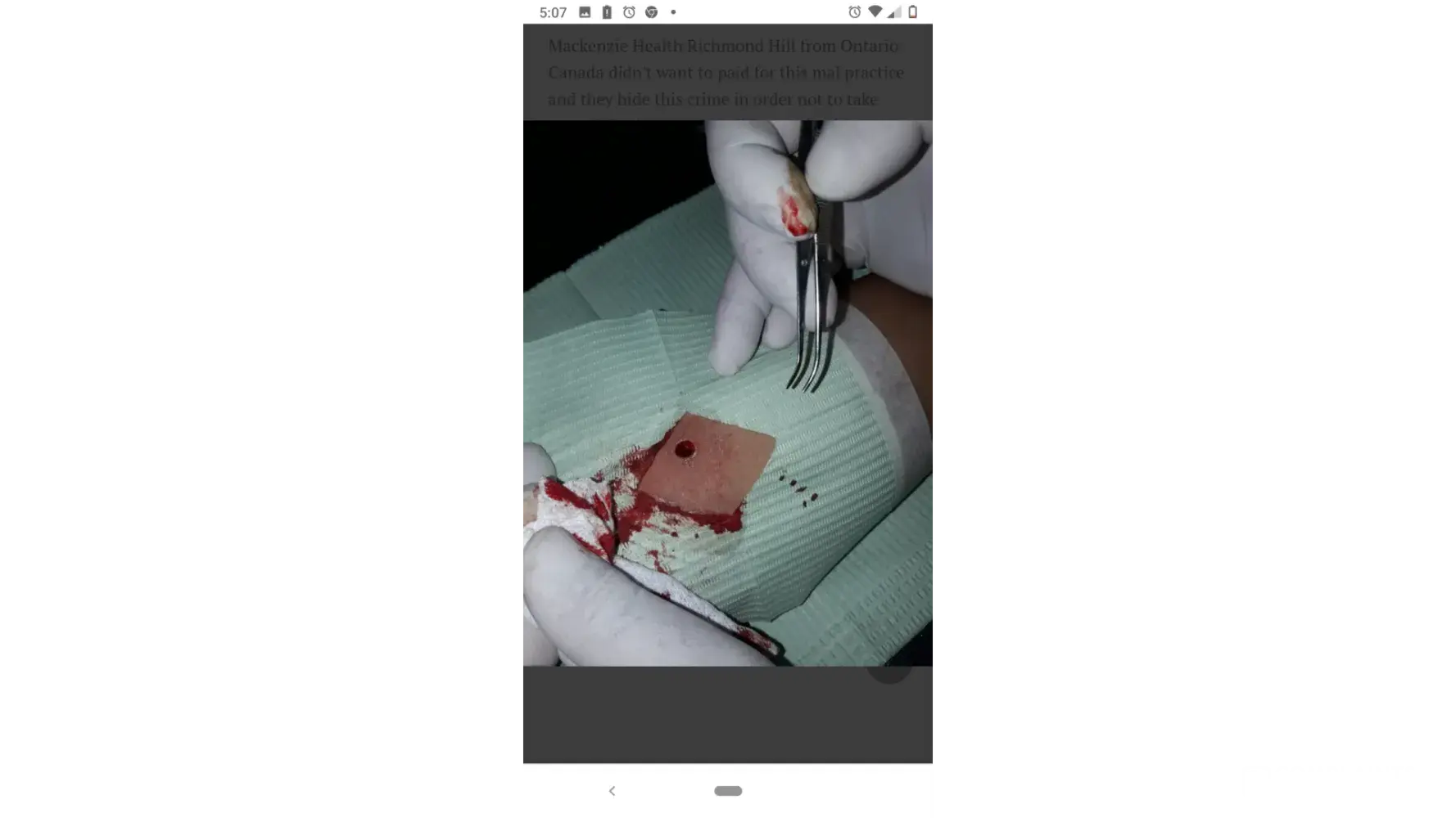 Mackenzie Health Richmond Hill from Ontario Canada didn't want to paid for this mal practice and they hide this crime in order not to take care of the damage they did to my health .