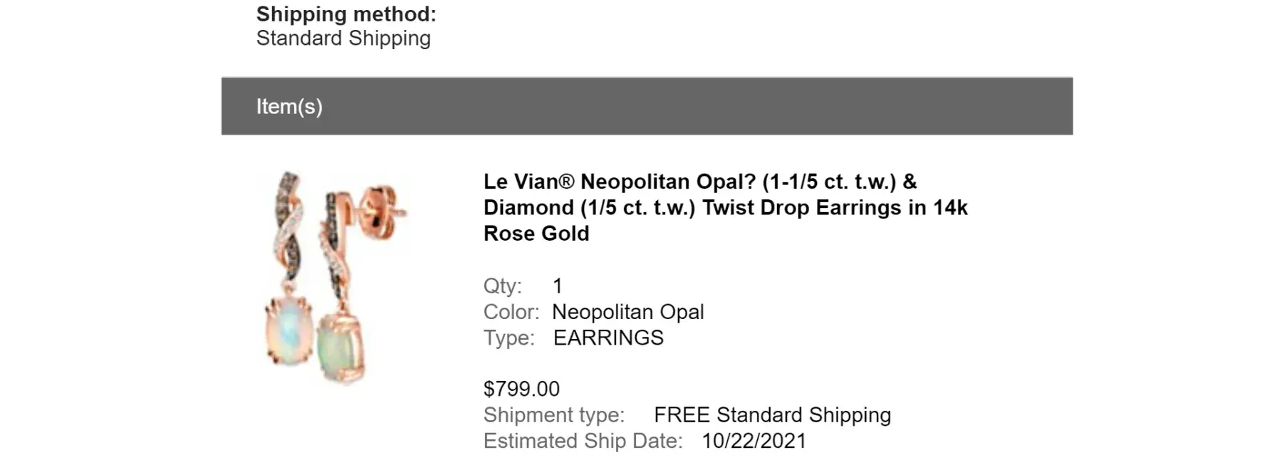 I purchased a set of opal earrings from Macy's online.