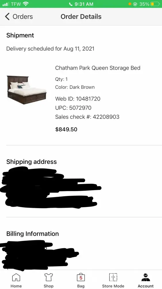 money was returned to me, and I said okay cool. My furniture was delivered and a few