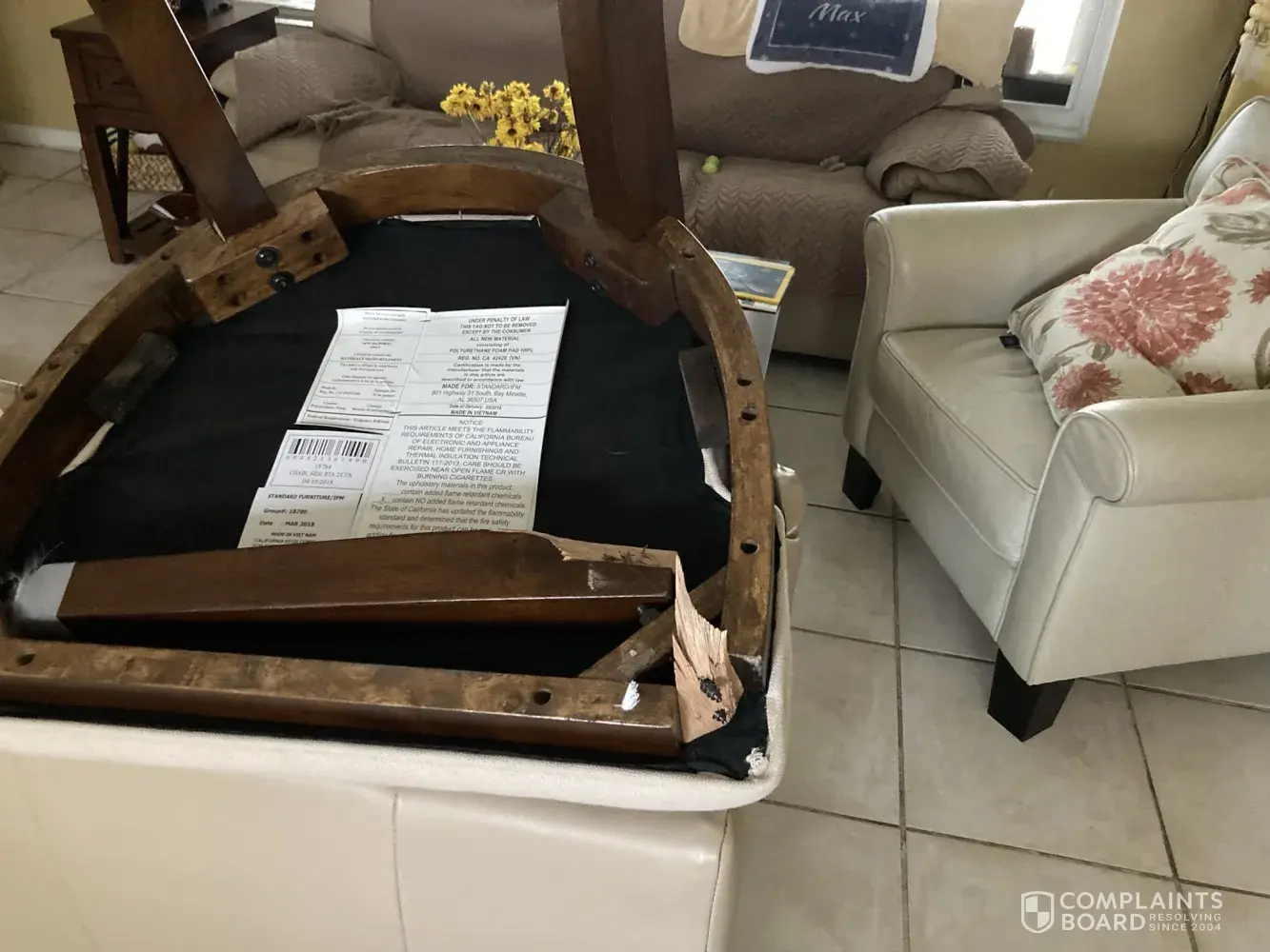 I purchased a dining room set in February of 2019. In October 2020, I was sitting with friends on one of my dining room chairs and the rear left leg of my chair cracked and came off completely from the chair body. I took the broken leg to The Gardens Macy's store where it was purchased and was told the warranty has expired and there was nothing they could do. I found a furniture repair man and had the leg installed back on the chair at a cost of $150.00. Unfortunately, however, because of the way the leg broke off, the chair leg is slightly shorter and tilts when sat on.