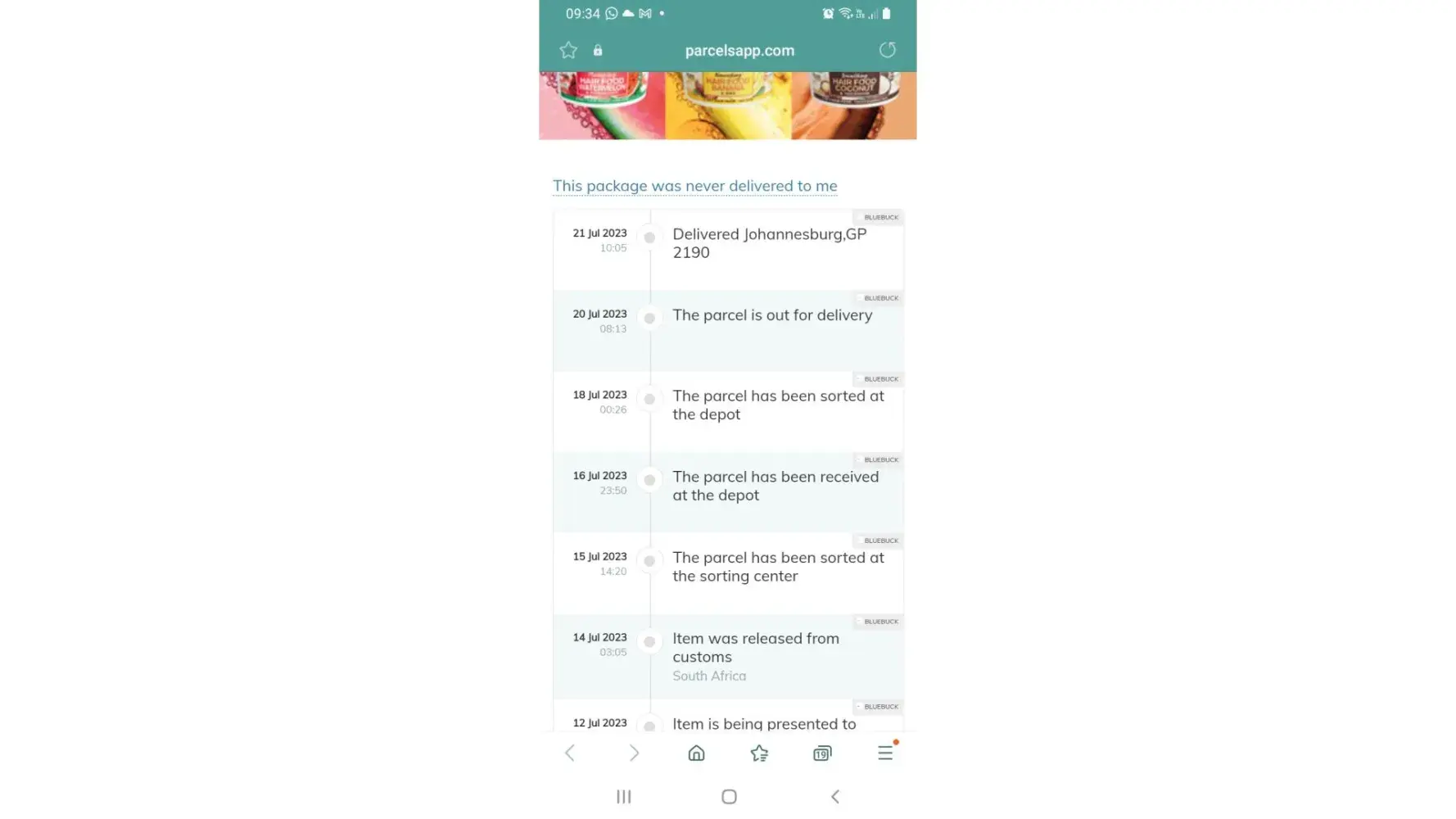 Good day, I've placed an order online, been tracking it as well until yesterday the 21st of July when I checked to my surprise it says my parcel has been delivered at 10:05 yet I was home all day but I didn't receive ant parcel.