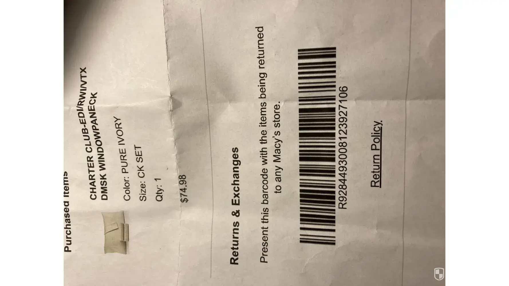I will never buy Charter Club from your store again.