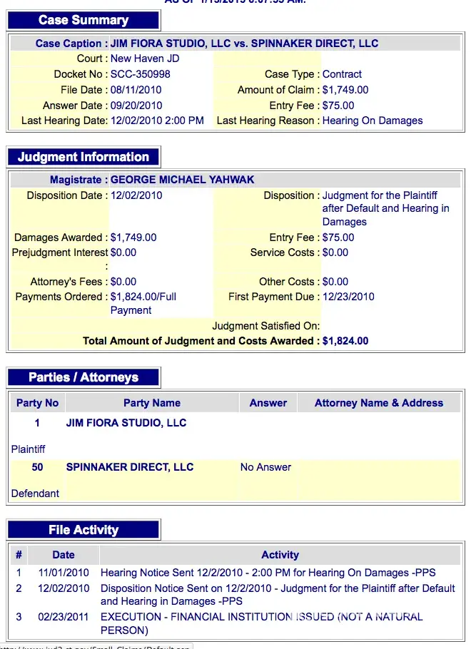 Read full complaint and 4 commentsSpinnaker Direct Matthew Kolk - PHOTOGRAPHER SUES FOR PAYMENT