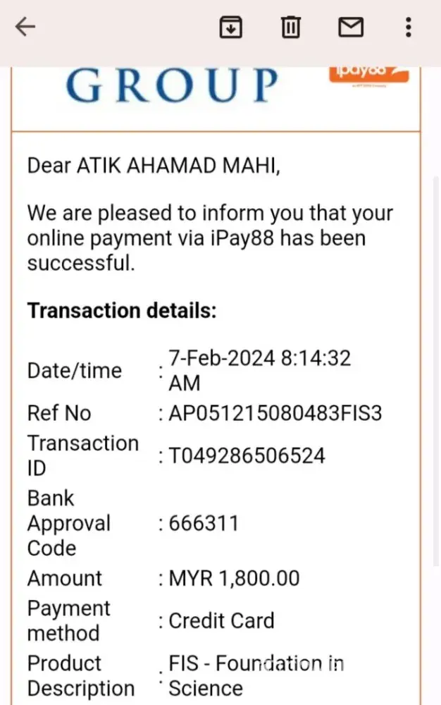 On February 6, I applied to study foundation in science at MAHSA University. In order to apply,I have to paid registration fee which is around rm 1800 to the MAHSA University before I was enrolled.