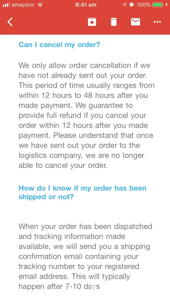 They promise to customer 100%refund for in satisfaction, but when I sent email to them on 31-oct to cancel order and refund the money, They refused because my order shipped. Then No reply anymore from them when I ask for tracking number .