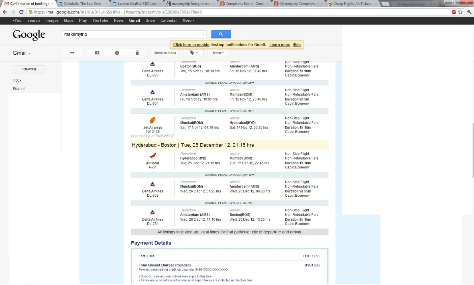 November 25th I am browsing for booking a flight ticket to India one way. I am excited to finally meet my family after three and half years. After some friends recommendations I go to Make My trip web site. I go to see that it’s an Indian online travel booking company. It also says no. 1 choice for NRI, India's No. 1 Travel Company and a lot of other stuff. I go to the web site and to the Chat option and start chatting with Mr. Sharma. Reference ID: [[protected]] Chat session. I give him my travel details and also mention I need an airline ticket which do not require TRANSIT VISA. He acknowledges it and books me a flight on Kuwait Airlines and assures me that no transit visa is required, The flight will depart from JFK Airport to Mumbai and samll stop over in Kuwait for flight Change.