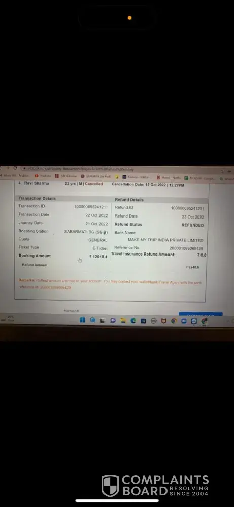 But in my Make my trip Account it reflects Zero refund.