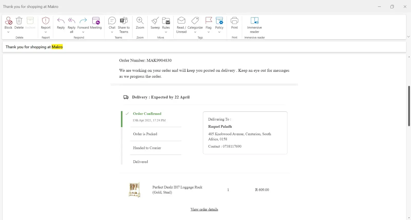 I’m not happy about makro I was expecting my order on Monday the driver called me at night says he can’t deliver, he’s gonna deliver on Tuesday today it’s Thursday,when I call makro I don’t help , when I track my order it say already delivered but I didn’t get my order,I would like to get my refund My order -OD436281806535974100 My contact number [protected]