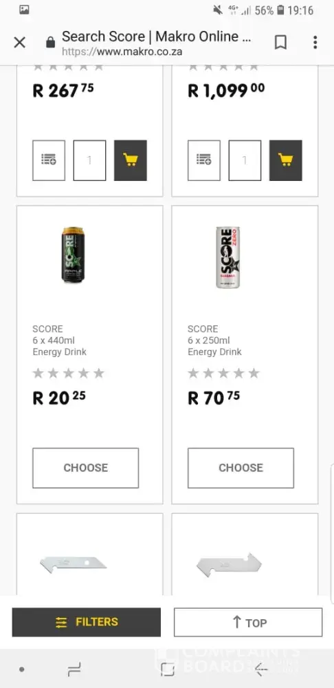 I contacted makro about a online advertisement of score energy drinks at a price of twenty rand and seventy-five cents for a six pack . I tried purchasing and ordering online but the page kept having problems as soon as you click on it. So I emailed customer care and they told me to try again with my purchase. So i replied back to the mail and asked if the price will be the same, the answer was no, now I'll have to pay forty rand a six pack. So my complaint is, if the price you advertise the drinks for, is it not the price i pay. I send them a screen shot from my phone showing the price. Their mistake not mine. I pay the price i see? I wanted to buy 6 of those six packs and i informed them so. This is makros mistake not mine.