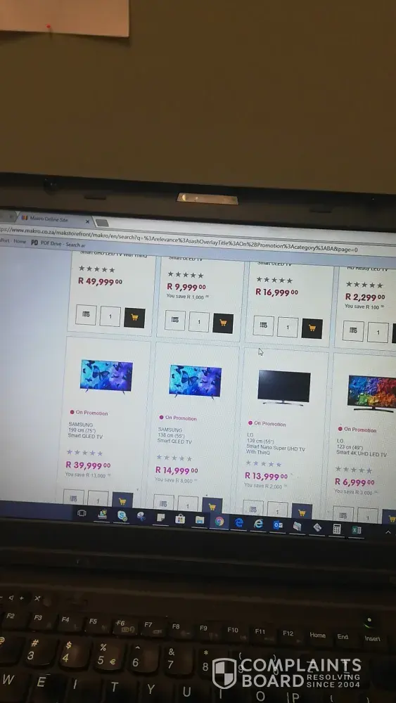 I am unsatisfied with the advertising that makro has on the online website. It is false advertising. Note that I have went on to the makro website on the 28/02/19, to view the televisions. Once on the television web page, I then saw the 49" lg smart 4k uhd led tv - product id - [protected]_ea
