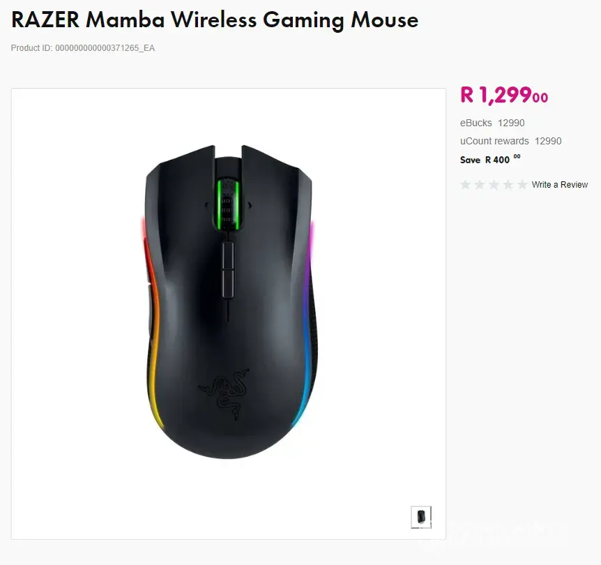 It happened on the 2nd of May 2019. I looked online for a Razer Mamba wireless. https://www.makro.co.za/makstorefront/electronics-computers/computers-tablets/computer-tablet-accessories/peripherals/razer-mamba-wireless-gaming-mouse/p/000000000000371265_EA?gclid=EAIaIQobChMIq4esw5X94QIVgrUYCh0nTAQYEAQYAiABEgInAPD_BwE. They advertised as you can see a razer mamba with RGB. I then phoned to check that they had it in stock around 20 minutes before arriving at Makro. They told me they had it in stock at the price advertised (R1300). When I got there they had the old mouse with no RGB(completely different mouse). But it had the same code as on the website. Therefore we came to the conclusion that they had falsely advertised on there website. This is illegal. I would like to either get the proper mouse with charging dock for free or at a discount. Below I added the difference between the two mouses. Thank you