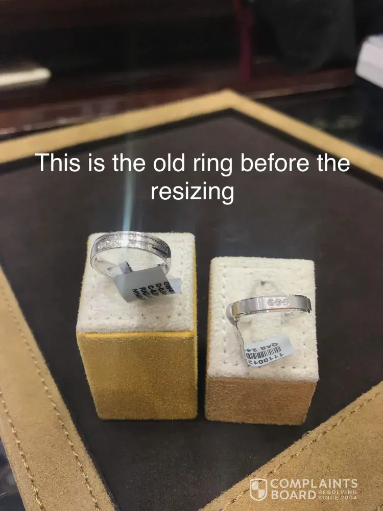 The nightmare comes when we resize the rings. I sent to them in a awesome figure for "resizing" and what they did is reshapingðŸ˜It doesnt look nice the new shape now. I looks very cheap. I trusted Maalabar with this. 😩I want the same figure before. Even the design behind it should have returned back to its original figure. This is breech of the design from Malabar. The one took from the small on will be added to big one. It needs to be 17.