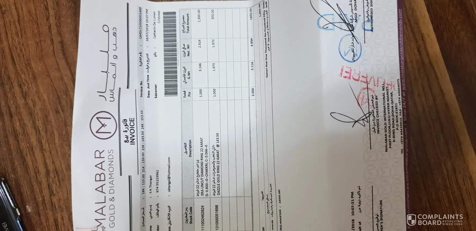 invoice no-[protected], date- 11/01/2016, malabar gold jewellery llc, po box 3544, pc 112, west gate mall, high ruwi street, oman, phn +[protected].