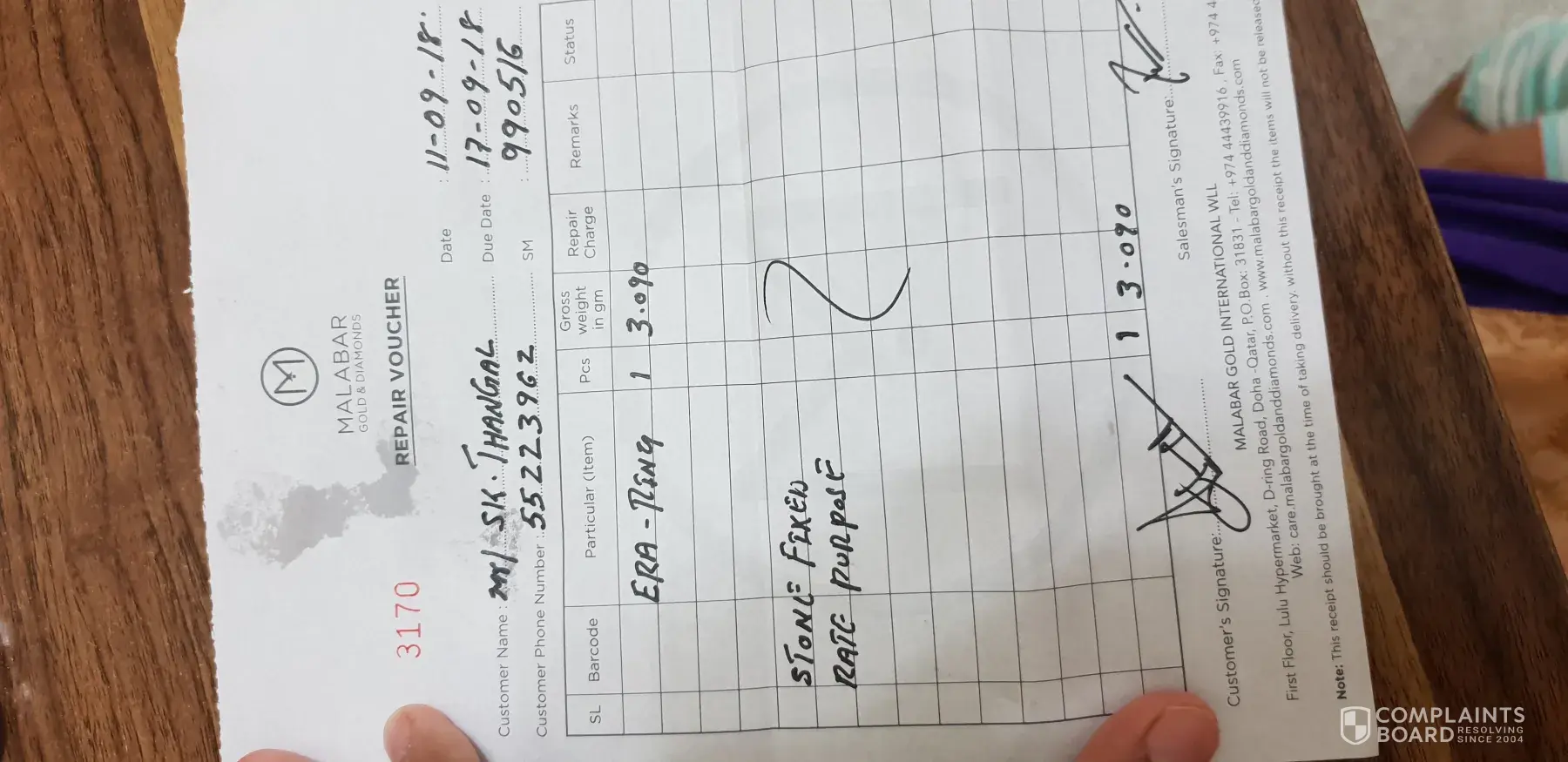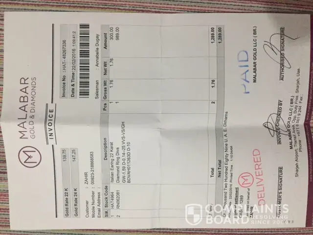 On 9.2.2018 I visited malabar outlet @mega mall sharajah, I bought a gold ring