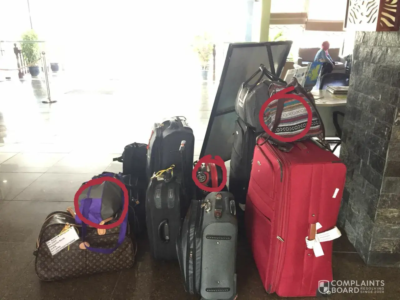 I have marked the bags which we have with us in red circles. Other 8 bags we didn't receive.