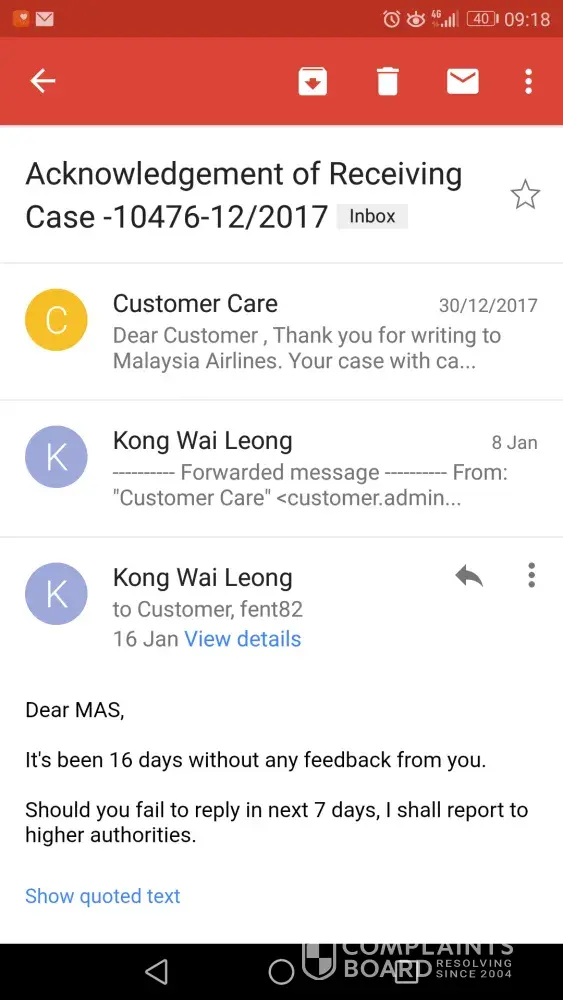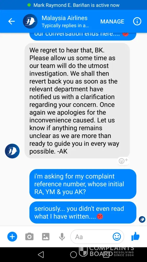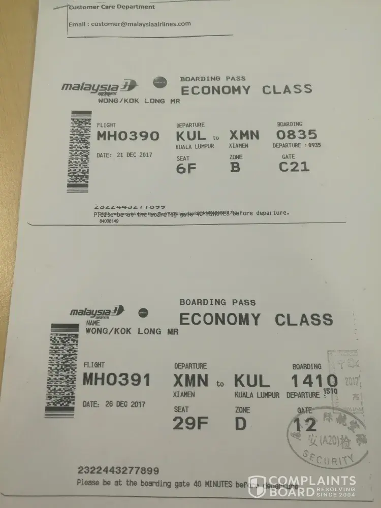 Malaysia Airlines Customer Care Centre (customer. [protected]@malaysiaairlines.com) failed to respond and even worse, they are not reachable. FB team don't even read by giving nonsense reply.