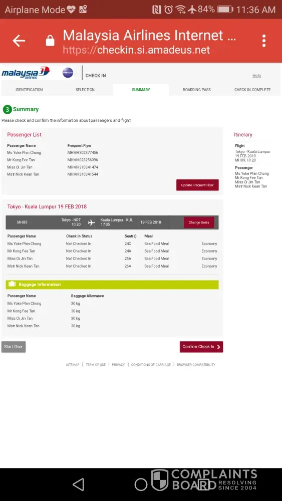 check-in for flight mh1152 on 1 march 2018