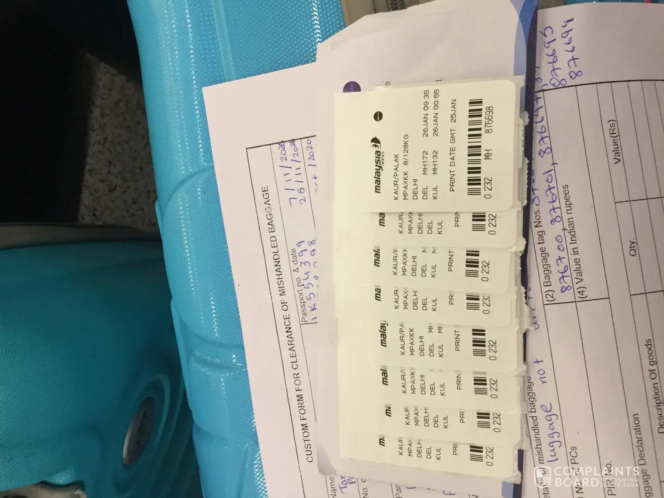 MAS ground staff assisted me with logging a complaint and a report was generated.