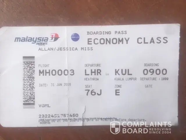 I am writing to complain about a recent journey I took with Malaysia Airlines, from London (Heathrow) to Kuala Lumpur. Details are as follows: