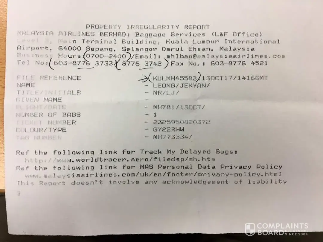 I would like to know how the Malaysia Airline handling in this case, this is totally no customer service quality as all. Addition, my luggage was damaged when I received this morning 1130am.